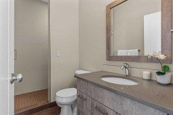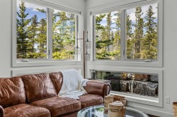 Welcome to this exclusive end-unit townhome nestled within the prestigious Three Sisters Mountain Village — a serene retreat that balances upscale design with a warm, inviting comfort. Boasting over 1,100 square feet of thoughtfully designed living space, this home delivers an effortless blend of natural beauty and modern luxury. Step inside to discover two private bedrooms, each enhanced with its own spa-like ensuite.The primary corner suite is a true sanctuary: expansive, floor-to-ceiling windows frame breathtaking mountain vistas, while a sophisticated 3-piece ensuite and a generous walk-in closet elevate the experience. The second bedroom offers its own private patio overlooking a lush, forested setting and sweeping mountain views—a peaceful escape enhanced by a stylish 4-piece ensuite and ample storage in its walk-in closet. The heart of thishome is the open-concept kitchen and living area, where upgraded stainless steel appliances and elegant quartz countertops set the stage for culinary adventures and memorable gatherings. The kitchen seamlessly integrates with the living space, enhanced by hardwood flooring throughout the main floor and the warmth of a tile-surrounded fireplace that invites cozy evenings by the glow of dancing flames. A unique feature of this townhome is its dual outdoor retreats. The sunken patio off the dining area overlooks a quiet green space, presenting a perfect setting for alfresco dining or unwinding with incredible mountain views. A second private patio off the second bedroom provides an inviting space to savour the fresh mountain air and watch nature’s colours shift throughout the day. Additional amenities include a convenient laundry space with stacked washer and dryer, a single- car garage, and access to a community rich in pathways, hiking trails, and parks. Positioned close to world-class golf courses, ski hills, local schools, and the soon-to-be-open Gateway shopping district, this home offers not only luxurious living but also an enviable location that caters to an active, yet relaxed lifestyle. Discover a home that embodies both upscale elegance and serene comfort—a perfect haven for those who value quality, style, and a connection to nature.