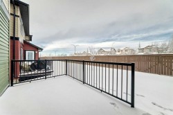 Welcome to this well-maintained semi-detached home located in the established and sought-after community of Westmere in Chestermere. Designed for comfortable everyday living, this bright and inviting residence offers a functional two-storey layout with three bedrooms, two and a half bathrooms and the added convenience of a double attached garage. The main floor features an open and welcoming living space filled with natural light, ideal for both relaxing and entertaining. The kitchen is thoughtfully designed with modern finishes and stainless steel appliances, offering ample cabinetry and workspace for home chefs, while the adjoining dining area creates a natural gathering place for family meals and special occasions. Added conveniences on the main level include a powder room and laundry area for effortless daily routines. Upstairs, the primary bedroom serves as a private retreat with a walk-in closet and a full ensuite, while two additional bedrooms and another full bathroom provide flexibility for family, guests, or a home office. The partially developed basement presents excellent potential for future customization, whether additional living space, recreation, or storage is desired. Enjoy the benefits of a double attached garage, a low-maintenance exterior, and the ease of condo living with snow removal and grounds maintenance included. The location is exceptional, surrounded by parks, pathways, schools, shopping, and dining, with quick access to Chestermere Lake and major routes for commuting. This home offers an ideal balance of comfort, convenience, and lifestyle in one of Chestermere’s most desirable neighbourhoods.