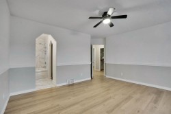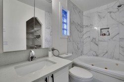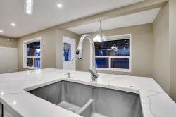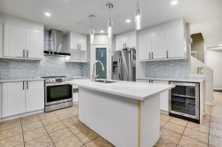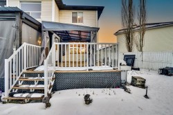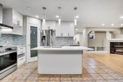 Welcome to 58 Lakeview Bay, a fully finished and stunning property nestled in one of Chestermere’s most desirable lakefront communities. This beautiful home offers approximately 1,960 sq. ft. of elegant living space, perfectly blending comfort and style. Situated on a large pie-shaped lot with ample RV/boat parking, this residence is ideal for families and entertainers alike.The main floor features an upgraded kitchen equipped with premium stainless-steel appliances, an electric stove, chimney hood fan, French door fridge with waterline, wine cooler, quartz countertops, a stylish backsplash, full-height cabinets, pantry, and an island/bar for casual dining. Additional highlights include a convenient powder room with cabinetry, a dining room, laundry area, family room, and a living room with an inviting gas fireplace—perfect for relaxing or hosting guests. Large windows and exterior doors flood the home with natural light, creating a bright and airy ambiance, further enhanced by upgraded light fixtures, pot lights, and an orange peel ceiling.Luxurious vinyl plank flooring extends from the stairs throughout the upper level. The spacious primary bedroom features an upgraded four-piece ensuite with a walk-in closet, quartz countertop vanity, large mirror with storage, beautiful tilework, and a jetted tub for a private retreat. Two additional large bedrooms with closets, a generous storage/linen closet, an upgraded three-piece bathroom, and a versatile bonus room—ideal as a fourth bedroom or home office—complete the upstairs.The developed basement offers a large living area with plush carpeting, a fourth bedroom, another three-piece bathroom, and a spacious mechanical/storage room. Outside, enjoy a double attached garage with an extended driveway, a large wood deck with a newly installed gazebo, a composite deck with a jacuzzi and glass railing, a huge RV/boat parking area, and an expansive pie lot featuring a playground, fire pit and shed.This exceptional home is within walking distance to the golf course and Chestermere Lake, and just minutes from East Hills shopping centre, grocery stores, restaurants, cafes, schools, police, and fire station. With easy access to major routes like 16 Avenue and 17 Avenue, this centrally located property offers both tranquility and convenience. Whether you’re seeking a serene retreat or a place to entertain, 58 Lakeview Bay delivers an outstanding lifestyle opportunity.
