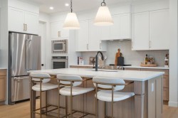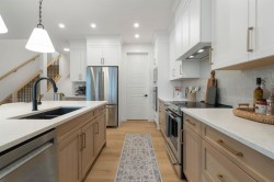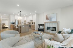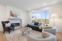 Discover your new home located in the exclusive community of Pinnacle Estates at Sunset Ridge in Cochrane. Introducing the MIA model by Aspen Creek Designer Homes, voted Cochrane Builder of the Year two years in a row. With over 3,100 sq. ft. of developed living space, this corner-lot home is designed for both function and style.A wraparound front porch sets the tone, offering incredible views from all angles. Inside, the spacious entryway flows into a built-in mudroom with coat racks and bench, along with a convenient powder bath. The main floor showcases an open-concept design filled with natural light from oversized windows. The kitchen is a true standout with custom cabinetry, stainless steal appliances, quartz counters, double ovens, and a walk-in pantry with built-in shelving. A tucked-away work space is ideal for those needing a home office. The living room centers around a cozy electric fireplace, while patio doors off the dining area open to the covered porch that is perfect for entertaining or unwinding.Upstairs, the primary suite is privately set apart and features wainscoting detail, a large walk-in closet with custom shelving, and a spa-inspired ensuite with a soaker tub and glass shower. Just outside, the coffee bar on the landing adds a thoughtful touch. Two additional bedrooms with large closets, a generous sun filled bonus room, a 4 piece bathroom with ample counter space and storage for all the linens with a laundry room that completes the upper level.The fully finished lower level includes a spacious rec room, additional bedroom, full bathroom and plenty of storage. The outside yard has been fully covered with sod and is yours to personalize with space for a trampoline, garden or fire pit to spend those summer nights. All of this located one block from RanchView School (K-8), parks, and new pathways leading to the historic Cochrane Ranchehouse. Book your showing today!