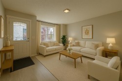 Welcome to this fantastic opportunity in the desirable community of Fireside in Cochrane. If you appreciate quick access to the mountains and a home that truly stands out, then this is the place for you.This 3-bedroom townhouse offers a unique advantage: NO CONDO FEE. As an END UNIT, it benefits from an abundance of natural light streaming in from the side. The generous lot, over 25 FEET WIDE, provides the potential to build a double garage—a rare find compared to other units with narrower lots.The main floor is perfect for a growing family, featuring a south-facing living room and an open-concept layout for the dining and kitchen areas. The kitchen is a true highlight with its modern design, including a large quartz island, a sleek backsplash, and white cabinets. A Samsung appliance package adds both style and convenience.Upstairs, you’ll find a spacious master bedroom complete with a 3-piece ensuite and a walk-in closet. Two additional well-proportioned bedrooms are ideal for children or guests. A 4-piece bathroom, linen storage, and a conveniently located SECOND-FLOOR LAUNDRY room complete the upper level.This home feels and shows like new, offering the perfect blend of modern living and family-friendly practicality.