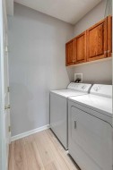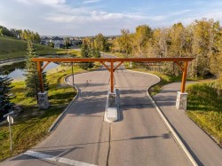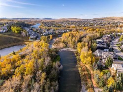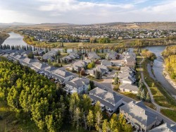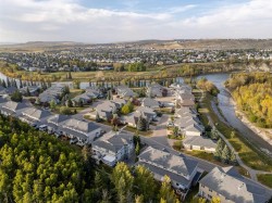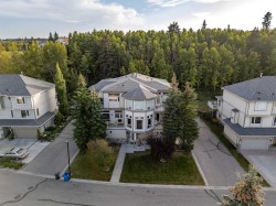 This is a rare opportunity to purchase a top-floor bungalow-style apartment with an oversized, heated double attached garage in the serene riverside community of Crawford Ranch. A secure, private 'New York' style elevator opens directly into your foyer, offering both convenience and privacy. The layout includes 10-foot ceilings, two bedrooms, and two full bathrooms. The living room features a cozy gas fireplace with built-ins, while the kitchen offers ample cabinetry, counter space, and access to a spacious deck. A separate dining area adds flexibility for everyday use or entertaining. The primary bedroom window backs onto a forested area, making it extremely private. The spacious ensuite includes a soaker tub, separate shower and large walk-in closet. The second bedroom and full bath are ideal for guests. In-suite laundry is located near the secondary exit, which leads directly to an outdoor greenspace. There is also the added bonus of a sink in the garage, with hot and cold water. Recent updates include a new hot water tank, new laminate flooring, new MET blinds (including some darkening blinds and motorized blinds) and custom cabinet work in the pantry & front closet. Steps from the river and walking paths, this home is well-suited for buyers seeking a practical, low-maintenance lifestyle in a quiet community.
