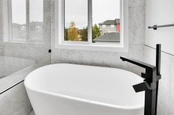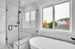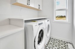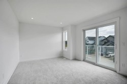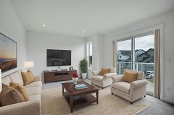 OPEN HOUSE SATURDAY NOVEMBER 22ND FROM 12-3. Welcome to this stunning 2200+ sq. foot home in the heart of Pinnacle in Sunset Ridge, Cochrane, where modern design meets natural beauty. Just 45 mins from the majestic Rocky Mountains and 30 mins from downtown Calgary, this home is surrounded by serene ravine and mountain views, offering the perfect balance between peaceful retreat and urban convenience. Built with every detail in mind, the home features a timeless neutral colour palette and large windows that fill each room with natural light. The open-concept great room centers around a cozy fireplace, seamlessly connecting to a spacious dining area and chef inspired kitchen. The kitchen boasts elegant white oak cabinetry with under-cabinet lighting, a large central quartz island ideal for entertaining, and high-end stainless steel KitchenAid appliances, including a gas stove, built in wall oven, and microwave. A Blanco granite sink adds both functionality and style to this beautiful space. Upstairs a central bonus room opens onto a private balcony where you can take in the sweeping views of the ravine and mountains. The primary suite is a tranquil retreat with a soft accent wall and a decorative barn door leading to the luxurious 5-piece ensuite complete with a stand-up shower, freestanding soaker tub, dual vanity, and large walk in closet with custom built in shelving. The upper floor also features a convenient laundry room with washer and dryer, built in sink, and additional cabinetry, as well as 2 spacious secondary bedrooms designed fo comfort and flexibility. Thoughtful details are found throughout the home, including a wide front entrance with built in bench, a mudroom with organized shoe racks and coat hooks, and balconies at both front and back of the house that offer 360-degree views. Additional conveniences include gas line to the garage, a separate side entrance, and a large back deck with a BBQ gas hookup, perfect for outdoor gatherings. This exceptional property is ideally located near scenic walking trails, schools, restaurants, and shopping, making it the perfect place to call home. Combining modern craftsmanship, elegant finishes, and breathtaking surroundings, this Cochrane residence offers the best of luxury living with a touch of mountain tranquility. Call for your private showing today.