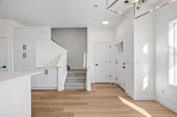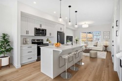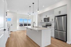 *MOVE IN READY FOR DECEMBER 2025 - MEASUREMENTS are pulled from similar unit* Welcome to the newly built #804, 525 River Heights Drive. This townhome features a HUGE SOUTH-FACING FENCED BACKYARD that offers the feel of a single-family yard. Inside, the main floor is bright and open, with a modern layout designed for both style and function. This unit backs onto a WALKING PATH AND GREENSPACE! At the heart of the home is a SLEEK CONTEMPORARY KITCHEN with QUARTZ COUNTERTOPS, MATTE BLACK HARDWARE, WHIRLPOOL STAINLESS STEEL APPLIANCES, SOFT-CLOSE CABINETRY, and a CENTRAL ISLAND WITH SEATING, ideal for casual dining or entertaining. The kitchen flows seamlessly into the dining and living areas, where LARGE WINDOWS and LUXURY FLOORING create a welcoming atmosphere. A powder room and a DEDICATED MUDROOM off the back entrance add practicality to everyday living. Upstairs, the primary bedroom includes a WALK-IN CLOSET and a PRIVATE THREE-PIECE ENSUITE. Two additional bedrooms provide versatile space for children, guests, or a home office. A four-piece bathroom and a CENTRUALLY LOCATED LAUNDRY area complete the upper floor with added convenience. The unfinished basement offers potential for future development, extra storage, or a layout tailored to your needs. Energy-efficient features such as DUAL-PANE windows, a HIGH-EFFECIENCY HVAC system, and an HRV unit support year-round comfort. Outdoors, you can relax in your FULLY FENCED BACKYARD with a REAR PATIO or enjoy a quiet morning on the COVERED FRONT PORCH. Two parking stalls are INCLUDED, and with LANCSDCAPING and SNOW REMOVAL taken care of, this property is truly low maintenance. Situated in the well-established community of RIVERSONG, you are close to schools, parks, walking paths, CO-OP and the Spray Lake Sawmills Family Sports Centre. Quick access to Highway 1 and 22 makes both Calgary and the mountains easy to reach. With quality finishes, a thoughtful design, and a vibrant neighborhood, this home offers comfort and convenience in equal measure. Please note that photos are taken from the showhome and may not reflect this property, as it is still under construction. CONTACT TO VIEW THE FREESTONE SHOWHOME at 525 RIVER HEIGHTS DRIVE – OPEN WEEKENDS 12 – 5pm!