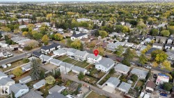 Charming 2-storey half duplex with detached double garage (20x20) in Canora. This 1,140 sqft (plus full basement) home features upgrades throughout including new appliances, phantom screen door, freshly painted walls, newer above grade triple panel windows (2022) and new shingles. On the main level: spacious living room with large east-facing windows, kitchen and dining area with tile flooring & modern lighting and a 2-piece powder room. Upstairs: 3 generous-sized bedrooms and a 4-piece bathroom. The partially finished basement boasts plenty of space for a family room, storage or hobby room as well as laundry room. Outside: a large, partially fenced yard with patio, storage shed and pathway to the garage with back alley access. Located on a quiet treed street near all amenities as well as walking trails and MacKinnon Ravine. Easy access to Stony Plain Road for commuting. No condo fees! Other half of duplex is also for sale through different agent MLS E4456467