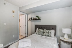 This cozy, 2 bed/2 bath, 854 sq ft unit is well lit with natural light due to its private corner location. It features A/C, a fireplace, stainless steel appliances, as well as a large wrap-around patio that is great for outdoor living and enjoying the city views. Your new home awaits in a vibrant neighborhood surrounded by the Ice District/Rogers Place Arena, MacEwan University, the LRT, and popular dining spots like the Lingnan, & Brew and Bloom. Additionally, the property offers heated underground parking; a valuable feature during the winter months in Edmonton. This property is popular due to its location and proximity to amenities. Come take a look!