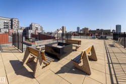 PRIME BREWERY DISTRICT LOCATION! This beautifully appointed 2 bedroom, 2 bath condo features in-suite laundry, private patio with gas BBQ hookup overlooking a peaceful courtyard, and rooftop access with breathtaking city skyline views. Heated underground parking included. Condo fees cover heat, water, A/C, and parking—exceptional value! Locker for package deliveries but most are delivered direct to your apartment door! Walk to trendy cafés, bistros, bakeries, and shopping. Bike lanes at your doorstep make commuting effortless. Pet-friendly building with ground-level courtyard access perfect for dog owners. This is urban living at its finest—comfort, convenience, and lifestyle all in one package. Don't miss this opportunity in Edmonton's MOST SOUGHT AFTER urban-professional neighbourhood! (Some photos virtually staged).