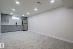 FULLY RENOVATED & MOVE-IN READY! This gorgeous 5-bedroom bungalow on a HUGE lot in family-friendly Delwood has it all! Every inch has been beautifully updated with modern style and high-end finishes — stunning vinyl plank flooring, pot lighting, & quartz counters. Newer windows, furnace (2020), HWT (2023), and softener (2023). You’ll love the bright open layout with vaulted ceilings, exposed beams, and a sleek linear fireplace. The chef’s kitchen shines with quartz counters, stainless steel appliances, elegant cabinetry, and a breakfast bar overlooking the spacious living room. Three generous bedrooms and a designer bathroom complete the main floor. The SEPARATE ENTRANCE leads to a fabulous finished basement with 2 bedrooms, a big family room with custom WET BAR, luxury bath with glass shower, and plenty of storage. Enjoy the large fenced yard, patio, DOUBLE garage and let's not forget the CENTRAL A/C!!. Close to great schools, shopping, and parks — this stylish home is the total package!