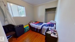 Welcome to this 1,027.96 sq ft bungalow with a fully finished basement, offering 3 bedrooms on the main floor plus 1 in the lower level. The main floor features a 4-piece bathroom and original hardwood floors through most of the living spaces. Downstairs you’ll find a spacious recreation room, a wet bar, a 3-piece bathroom, and the additional bedroom. Outside, the generous fenced yard is surrounded by mature trees and shrubs, providing both privacy and charm. A double detached garage adds convenience, and the location is excellent—within walking distance to schools and a shopping mall.