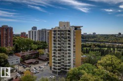 Prestigious Le Marchand Tower with Beautiful Views! Elegance Abounds in this luxurious 1935 sq ft sprawling property. The Grand Entrance brings you to the open concept living space with the den overlooking the sunken living area and dining room flowing into the large kitchen filled with plenty of counter space, cabinets, ample storage plus pantry room. There are 2 generous bedrooms with the primary suite boasting a 5 piece ensuite with walk-in shower, jetted tub and cedar closet. The building offers a large social/entertainment room and guest suite for your out of town guests to Enjoy their private space. Overlooking the river valley and steps to every amenity you wish to entertain, this property is a Treasure at your fingertips.
