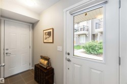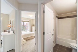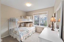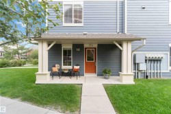Immaculate 1700 sqft END UNIT townhome in the desirable community of Walker! The entry level features a welcoming outdoor patio, a bright flex space—perfect for an office, gym or playroom—and a double attached garage. The open-concept main floor offers an abundance of natural light through large windows, a spacious living area with bonus nook, island with breakfast bar, half bath, and a spacious dining space that opens to a private patio overlooking pristine greenspace. Upstairs, the primary suite includes a walk-in closet and 3pc ensuite with walk-in shower. Two more generous sized bedrooms, a full bath, and laundry room complete the top floor. This quiet, well-kept complex offers low-maintenance living close to parks, walking trails, schools, shopping, public transit, and easy access to Ellerslie Rd, 50th Street, and the Anthony Henday. Pride of ownership shows throughout—just move in and enjoy! Well-managed complex with affordable condo fees.
