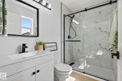 This beautifully renovated 1,500 sq ft home in Wildrose, Edmonton, features modern updates and a comfortable layout. New flooring throughout creates a sleek look, while the fully remodeled kitchen boasts contemporary cabinets, stylish countertops, and updated appliances—perfect for cooking and entertaining. The main floor includes a new bathroom, adding convenience and luxury. Upstairs, there are additional fully renovated bathrooms, offering extra comfort. The spacious bedrooms are filled with natural light, creating a bright living environment. The south-facing backyard is ideal for outdoor activities, gardening, or relaxing in the sun. Beautifully landscaped, it enhances curb appeal and provides a private outdoor oasis. The thoughtful upgrades and quality finishes make this home move-in-ready, blending functional living spaces with modern aesthetics. It offers a combination of comfort, style, and outdoor appeal, making it a highly desirable property.