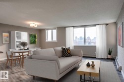 Live steps from everything in this FULLY RENOVATED 2-bedroom, 2-bath condo. Set high on the second-from-top floor, this home offers unforgettable sight lines of the River Valley, Legislature grounds, High Level Bridge, and the downtown skyline from every window. The open-concept layout includes updated finishes and a seamless flow, making the space feel instantly welcoming. Bedrooms are thoughtfully placed on opposite sides for privacy, creating a floor plan ideal for guests, roommates, or a dedicated home office. The spacious primary suite includes a 4-piece ensuite, Heated underground parking, a car wash bay, and a nearly complete outdoor courtyard add comfort and ease to daily living. Condo fees include all utilities except electricity, offering simple and predictable budgeting. With the LRT, Victoria Park, River Valley trails, cafés, restaurants, U of A, MacEwan, and downtown amenities at your doorstep, this home blends urban convenience with unmatched scenery—an incredible place to live Central.