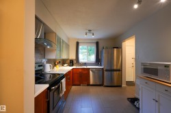RENOVATED CORNER UNIT FACING GREENSPACE WITH MASSIVE KITCHEN & OVERSIZED PRIMARY SUITE! Welcome to McLeod Place—an exceptionally maintained complex beside Casselman Park, just 5 minutes from Clareview LRT, Superstore, COSTCO & Walmart. Ideal for investors, this home is tenant-occupied until June 30, 2026, earning $1,550/month with a dream tenant in place. Bright and quiet, this corner unit offers privacy and sunlight without facing roads or parking lots. Inside, enjoy upgrades like new tile & plush carpet, updated bathrooms, and a renovated kitchen with Corian countertops, glass tile backsplash, upgraded appliances & track lighting. Barn doors between the kitchen & dining and in the oversized primary closet add a farmhouse-modern vibe. Updated hot water tank (2022) and furnace (2017, leased with ~$1,500 buyout) give peace of mind. The finished basement offers a versatile bed/den plus storage. Bonus: complex is completing a new fence project this year—take a look today and get ready to move right in!