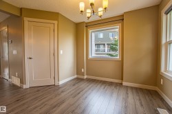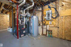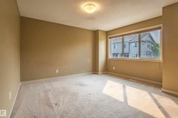 Welcome to Haddow Landing! This air-conditioned, bright south-facing 3-bedroom townhouse includes ***two titled parking stalls right in front of your door*** The two-storey layout is filled with natural light and features an unfinished basement ready for your customization. The main floor offers premium vinyl plank flooring, stainless steel appliances, ^black granite countertops^, and a half bath. Upstairs you’ll find 3 bedrooms and a full bath, with the primary boasting a large walk-in closet. The unit is quietly tucked into the interior of the complex, away from traffic noise. Out back, enjoy a private deck with natural gas BBQ hookup overlooking Haddow Community Park with the Ridge Community Center, playground, hockey rink, and sports fields just a short walk away. Fantastic location only one minute to Terwillegar Drive, close to The Currents at Windermere, and transit is right outside the complex. This home is ready for you!