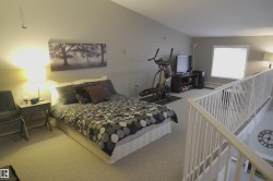 Welcome to this top floor Jefferson Lofts condo. A bright open loft with 17 ft ceilings. The living room features a natural gas fireplace, dining area offers extra built in shelving, and spacious open kitchen. Master bedroom has a massive walk thru closet and 4 piece ensuite. The loft area can be used as a second bedroom or versatile work/bonus space. You also have a second bathroom and in-suite laundry. One underground titled parking stall. Walking distance to Macewan, Rogers Arena and Ice District. You have to check this one out.