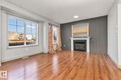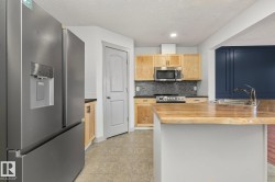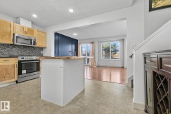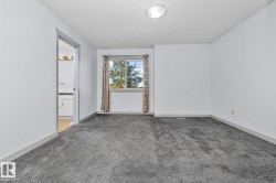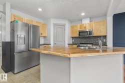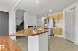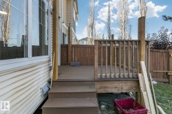 Welcome home! This 4 bedroom 2.5 bathroom unit will surely impress. The bright and open layout features a massive living room and plenty of windows for natural light. The sliding patio doors lead to the DECK and FULLY FENCED YARD. The beautiful kitchen has brand new chefs block counter top. The main floor includes a spacious entry and a half bath. Upstairs, you'll find a main bathroom, and three large bedrooms including the massive primary suite with WALK-IN-CLOSET, and 4 pc. ENSUITE with dual vanities. The exterior is full of charm and character. Consisting of a welcoming front porch, stone accents, and a single attached garage with high ceilings. For guests, VISITOR PARKING is just right out front. This complex has extremely LOW CONDO FEES. Located in the heart of Northeast Edmonton. Close to shopping, public transportation, schools and the Clareview Rec Center.