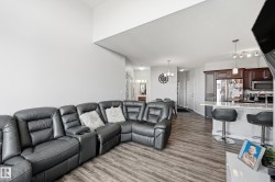 Executive Top Floor Corner Unit with 3 Bedrooms, and 2 Parking Stalls. Welcome to L’Attitude Studios where modern design meets executive living! This rare top-floor corner unit offers an Open Concept layout with Soaring 17 Foot ceilings in the living room, with floor to ceiling windows that flood the space with natural light. This home is loaded with upgrades including high-end flooring, quartz countertops in the kitchen, and bathrooms. The chef’s kitchen is an entertainer’s dream with a massive peninsula island, rich espresso cabinetry, and stainless steel appliances. The Master suite includes a walk-through closet leading to your Full Bathroom Ensuite. Two more large bedrooms. With access to the deck from all 3 Bedrooms. Stepping out onto the 292 SQFT Wrap Around Balcony with a gorgeous view overlooking the Windermere shopping plaza, perfect for relaxing or entertaining. Underground Parking with a Storage Cage. This is truly one of a kind, a stylish unit offering comfort, convenience, and luxury living.