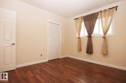 Great Curb Appeal! Spacious Corner Lot, Huge Garage & Plenty of Parking! Welcome to this 1,219 sq. ft. fully finished bungalow! This home has seen many updates including windows, siding, soffits, fascia, shingles, furnace, hot water tank, stainless steel appliances, and a refreshed kitchen with updated cabinets. Offering 4 bedrooms plus a flex room that could be a 5th, 2 bathrooms, and a separate entrance for future suite potential-ideal for families or investors. The finished basement has a large rec room with a charming wood-burning fireplace. Outside features an extended double garage with space for up to 6 vehicles. The fully fenced and landscaped yard is split into two areas—ideal for dogs or tenants. This home is steps from Jubilee Park with its spray park, skating rinks, playground, and picnic areas. Also, close to shopping, public transportation, restaurants, the North Sask River Valley trails, and roadways including Yellowhead Trail and Anthony Henday. Pet & Smoke free! Don’t miss this one!