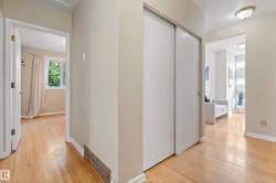 Situated on a large corner lot in sought-after Ottewell, this bright and versatile bungalow offers exceptional potential for investors, multi-generational living, or first-time buyers. The main floor features an inviting living room with large picture window, a spacious eat-in kitchen, and three bedrooms plus a full bath. The lower level offers a separate entrance leading to a bright second kitchen, two bedrooms, a full bath, and generous family room with cozy gas fireplace—ideal for suite potential. Numerous updates include newer vinyl plank flooring, fresh paint, and a newer hot water tank. Enjoy the mature, private yard with fruit trees, patio area, and single detached garage. Conveniently located just steps from schools, parks, and transit with easy access to Capilano Mall, downtown, and major routes. A solid home with excellent value and income flexibility in one of Edmonton’s most established neighbourhoods.