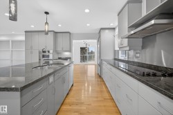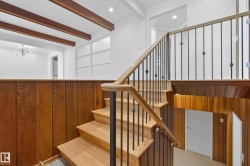 Updated home in a prime Laurier Heights/Buena Vista location steps to the river valley, Laurier Park, Buena Vista Park, and the Edmonton Valley Zoo. Offering 2,820 sq.ft. of total living space (incl. walkout level), this 2+1 bedroom home features a 2004 designer renovation on the main floor with an upgraded kitchen and two renovated baths, including a steam shower. Recent updates include fresh interior/exterior paint (2025), electrical upgrades (2025), new fencing (2025), LeafFilter system (2024), and central A/C. The walkout basement provides a large rec area, an additional bedroom, and potential to add more bedrooms if needed. Custom built-ins in the walkout level are included. Double detached garage and quick access to major routes, U of A, downtown, and nearby shopping. Some Photos have been staged