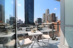 Come home to the 8th floor of the prestigious Ultima Tower! This contemporary 2-bed 2-bath corner suite offers sweeping views of downtown. Located in Ice District just steps away from Rogers Place. Open floor plan with loads of natural light from south and east facing floor to ceiling windows. 9’ ceilings, neutral paint palette and luxury vinyl plank blanket the floor. The spacious kitchen has been carefully crafted with granite countertops, stainless steel appliance package and dark maple cabinets. Work from home, tan on the south facing deck, this condo is fantastic! With 2 spacious bedrooms, including the primary bedroom that boasts a large walk-in closet and private ensuite bath. The building has an amazing lifestyle amenities package that includes gym, hot tub, huge patio, bbq area, indoor kitchen space and sitting area. All of this, plus titled underground heated parking, all located within walking distance to Rogers Place, MacEwan University, Jasper Avenue, and so many eateries!