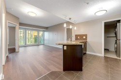 A Must-See at The Serenity! This bright 2 bed, 2 bath condo features floor-to-ceiling window in living area, quartz countertops, engineered hardwood, and an open-concept layout perfect for entertaining. The modern kitchen offers plenty of counter space, a double SS sink, tile backsplash, microwave hood fan, and stainless-steel appliances. The primary bedroom includes a 3-piece ensuite, while the second bedroom has a walk-through closet to the main 4-piece bath. Enjoy in-suite laundry, A/C, a gas BBQ hookup, and heated titled underground parking (stall #151).Condo fees cover all utilities. Located on Jasper Ave close to restaurants, transit, the Promenade, River Valley trails, Brewery District, Ice District, and U of A. Please note* property is sold “as is where is at time of possession”. No warranties or representations. Purchaser to confirm all details, including sizes, building style, any use type, parking, fees, utilities, taxes or any information pertaining to this property to their Satisfaction.
