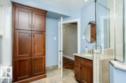 This stunning 2-storey home in sought-after Windsor Park offers luxury and privacy, just steps from the University of Alberta, river valley, and top-rated Windsor Park schools. Spanning 3,837 sq.ft. this renovated gem features 5 bedrooms and 4 bathrooms with modern upgrades.( Addt Document section). The spacious open-concept main floor boasts a chef-inspired kitchen with high-end appliances and custom finishes, complemented by a main floor office with a main floor bathroom heated floor, walk-in shower. The lower level includes 2 separate bedrooms with private bathrooms heated floor, while upstairs offers 3 generously sized bedrooms, including a serene primary retreat with a spa-style 5-piece ensuite. Enjoy two energy-efficient BIS wood-burning fireplaces, an oversized 3 car garage with an 8' door, upper storage, and an adjacent parking pad, plus RV storage in the yard. Perfect for families seeking comfort and convenience in a tranquil setting, this exceptional Edmonton home is a must-see!