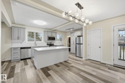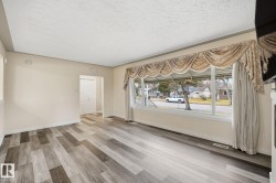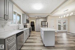 Welcome to this beautifully refreshed bungalow in the heart of Holyrood! Offering over 1,300 sq ft of bright, open living space, this home has been fully updated on the main floor with a spacious, modern kitchen featuring endless counter space, stylish finishes, and a large dining area perfect for family gatherings. The layout includes three generous bedrooms, highlighted by a primary suite with a private 3-piece ensuite, plus another fully renovated 3-piece bathroom. The main level blends comfort and functionality with newer flooring, lighting, and fresh finishes throughout. Downstairs, the basement has been stripped and is almost ready for a potential future suite or family basement space, complete with updated electrical, two furnaces, and a new hot water tank—offering the perfect blank canvas for added income or extended family living. A newer roof on both the home and double garage adds peace of mind, while the location provides quick access to schools, shopping, and Edmonton’s River Valley trails.