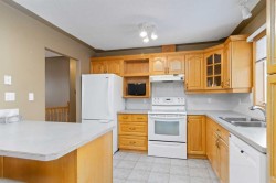 Welcome to 220 Boisvert Place! This beautifully maintained 4-bedroom bi-level is ideally located within walking distance to schools, shopping, and recreational amenities, including the popular Birchwood Trails.Step inside to a spacious foyer offering direct access to the double attached garage. The main floor features a bright, sun-filled living room where large windows highlight the hardwood flooring. A gas fireplace with elegant woodwork and marble tile surround adds a timeless touch of class. The living room is open into the dining area, which invite you through glass doors to a stunning two-tiered deck... an oasis-like space perfect for entertaining or relaxing with family. The private backyard is adorned by mature trees and shrubs, creating a peaceful outdoor retreat.The kitchen offers oak cabinetry, a large window overlooking the backyard, and a convenient sit-up island with added storage; ideal for the family chef and helpers alike. Also on the main floor is the generously sized primary bedroom, complete with a walk-in closet and a full 4-piece ensuite featuring a jetted tub. Two additional bedrooms with large backyard-facing windows complete the upper level.Downstairs, the impressive family and recreation rooms provide ample space for a home theatre, pool table, and gatherings (even the big ones), all with a second cozy gas fireplace. The lower level also includes a full bathroom, a fourth bedroom with walk-in closet, and a large laundry room with laundry sink and impressive storage options.Numerous updates over the years include shingle replacement, new hot water tank, new back deck and added A/C. This move-in-ready home offers immediate occupancy.Come discover Timberlea and all that Boisvert Place has to offer!