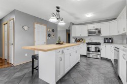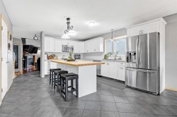 EXCELLENT FAMILY HOME IN A HIGHLY DESIRABLE NEIGHBOURHOOD!This stunning and extensively upgraded home offers exceptional quality, comfort, and style throughout. Featuring hardwood and tile flooring, a bright open-concept main floor with large windows, and a cozy natural gas fireplace, this home is ideal for families and entertainers alike.The spacious kitchen includes a large island, tile backsplash, updated stainless steel appliances, and ample cabinetry. Patio doors off the dining area lead to a 10’ x 14’ covered deck and concrete patio, overlooking the beautifully landscaped yard complete with a fire pit and stained fencing.The primary bedroom features a walk-in closet and 4-piece ensuite, while the second bedroom, full bathroom, and main floor laundry complete the upper level.The fully developed basement provides incredible versatility, featuring a second kitchen with large island, family room with gas fireplace, theatre room, wet bar, three additional bedrooms, and a 3-piece bathroom. The basement also includes dual-zone in-floor heating, and access to a cold storage room from the garage.Additional highlights: • Superior wood fireplace with heat-circulating fan ducted through home • Built-in speakers & surround sound throughout (including garage) • Insulated, heated garage with floor drain and radiant heat • 10’ x 16’ powered storage shed • Triple concrete driveway (27’ x 39’) • Concrete RV parking pad (12’ x 85’) • Furnace and ducts recently serviced • Roof replaced 4 years ago • Hot water tank (6 years old) • Fresh interior paint and updated fence stainThis executive-style family home has been meticulously maintained and thoughtfully upgraded — offering space, comfort, and quality in one of Grande Prairies best subdivisions!