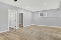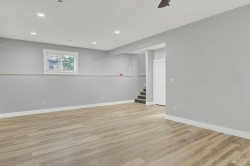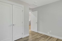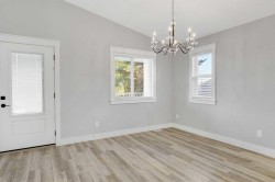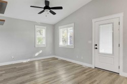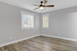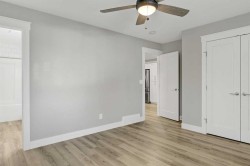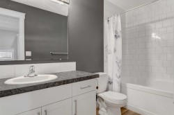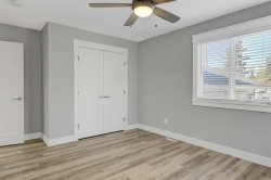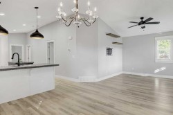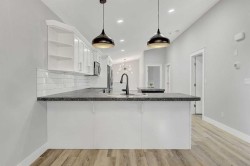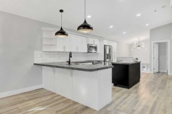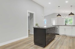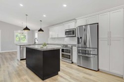 Experience the appeal of a quality well built home that looks and feels brand new! This immaculate property boasts current colors and decor, trendy lighting and modern finishes throughout. Designed for efficiency, it features triple pane windows, R50 attic insulation, and a high-efficiency furnace. The bright, open floor plan has vaulted ceilings, and durable vinyl plank flooring. The custom kitchen is a chef's dream with white shaker soft-close cabinets and drawers, a movable grey island with pull-up seating, built-in desk, subway tile backsplash, and high-end stainless steel appliances: a Samsung double convection oven, Bosch dishwasher, and convection microwave range hood. This spacious residence offers 4 bedrooms (2 up/2 down) and large 3 full bathrooms The large primary suite has a generous closet with custom organizers and a full ensuite. Built-in shelving and custom blinds are featured throughout. The bright, finished basement includes a large living space, high ceilings, large windows, laundry room with extra storage, and a finished play space under the stairs. Enjoy the convenience of a central location within walking distance to all amenities. Concrete parking for 4 vehicles or long enough for RV Parking. The single finished garage is roughed in for heat, and the tiled front entry provides a comfortable welcome. This fine property is ready for immediate possession and will look and feel newer than anything else you can find in the price range.
