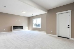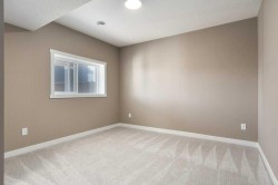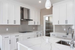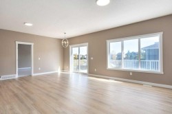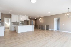 This is a brand new triple garage bungalow with a fully finished walkout basement. It is 1608 sq ft in a great area close to a beautiful waterway and park, and has premium finishes throughout. The main floor is a modern open plan with a wide entry hall, 9’ ceilings, high quality flooring, and a 25’ deck. The kitchen includes cabinets to the ceiling, quartz counters, under-mount sink, select tiles, and a large walk-in pantry. Also on the main floor is the spacious and open living / dining room, the primary bedroom, a laundry room, and a second bedroom or office. Deluxe appointments in the master suite include built in cabinetry in the walk-in closet, a double vanity, a freestanding soaker tub and a 6' shower. The lower level has three more spacious bedrooms and a very big family room with a built-in wet bar, a full bathroom and patio doors to a shady covered patio. All rooms in this home have lots of natural light, and there are many extras including a 8’ island in the kitchen, two fireplaces, and a Hardie board exterior.