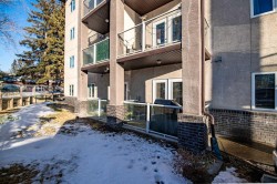 Welcome to Unit 106 – 5205 Woodland Road, Innisfail, a bright, quiet west-facing MAIN-FLOOR unit located in the well-maintained and desirable Woodland Manor condominium at the southwest end of town. This clean, well-cared-for home offers comfort, convenience and excellent value in a secure, quality-built building.This two-bedroom unit features a functional layout with a combination of ceramic tile, laminate and carpet flooring throughout. The kitchen is both practical and inviting, offering abundant cabinetry, a ceramic tile backsplash, breakfast counter and a built-in microwave hood fan. Six appliances are included, making this home move-in ready. The bright living room opens through French doors to a private west-facing patio with aluminum and glass railing—perfect for enjoying afternoon sun. Some owners have chosen to remove the glass panels for direct outdoor access, offering added flexibility and convenience. The primary bedroom includes two windows for excellent natural light and airflow. Additional features include quality vinyl casement crank-out windows, drywalled ceilings, an in-unit laundry room with extra storage, and a central vacuum system with attachments. The unit is equipped with forced-air heating and this home already includes A/C, a valuable and hard-to-find upgrade. Parking is a major bonus with ONE CLEAN, HEATED UNDERGROUND TITLED STALL conveniently located close to the elevator, plus ONE ASSIGNED OUTDOOR PARKING STALL with plug-in, and ample visitor parking marked 106.Woodland Manor is known for its solid construction, featuring double-drywalled interior walls for enhanced soundproofing, insulation, and energy efficiency. Condo fees include heat, water, sewer, and reserve fund contributions, offering excellent value and peace of mind. Pets are allowed with approval. Building amenities include secure keyless entry, security cameras, intercom system, elevator, wide hallways, staircases at each end, a social room right next to elevator and a well-maintained common area. Pets are permitted, and the building is designated for residents 18 years and older. An excellent opportunity for first-time buyers, downsizers or investors seeking a quiet, secure, main-floor condominium in a well-managed building in Innisfail.Long term tenants in place.