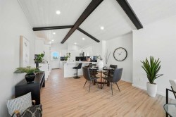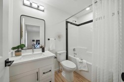 Step right in to a home that exudes LUXURY AND COMFORT, A practical and very functional floorplan, ideal for a growing family. Very IMPRESSIVE CURB APPEAL sets the tone- modern architectural lines, striking exterior finishes, and a welcoming front entry that feels fresh and inviting! Inside you will be wowed by the contemporary design, where clean lines, airy open spaces, and thoughtfully chosen finishes come together to create a home that feels both STYLISH and livable. High-end materials, sleek cabinetry, and high-end luxury vinyl plank flooring gives every room a polished, magazine worthy look, while large windows flood the home with natural light.. The main floor features an OPEN CONCEPT, 3 bedrooms, a four-piece bathroom, living room, dining and kitchen. Kitchen features: corner pantry with censored lighting, QUARTZ COUNTERTOPS, soft close doors and drawers, FULL POLISHED BLACK SUBWAY TILE, water line to the fridge, STAINLESS STEEL APPLIANCES, Undermount granite sink and black hardware. Shingles are 35-year asphalt, foundation is (ICF) insulated concrete form. The basement has been mostly wired and features a finished four-piece bathroom. Future floor plan for basement is available and features 2 spacious bedrooms, and a generous size family/recreational room. Plus the utility room where you will find the laundry and roughed in in-floor heat. PROGRESSIVE 10-year NEW HOME WARRANTY! The 20x24 double attached garage has rough in for heat, a floor drain and soft close modern overhead doors with driftwood finish. Other great features include: whitewash pine VAULTED CEILINGS on main floor, beams in living, dining and kitchen, electric fireplace in living room has feature wall with live edge wood mantle, commercial grade hot water tank, 35 year shingles, LED lighting and QUARTZ countertops throughout. Every detail in this show home has been carefully curated to showcase the latest in modern trends and craftsmanship- a perfect blend of function and flair. It’s a home that doesn't just impress at first glance. but continues to inspire as you explore every beautiful space.