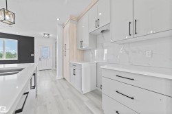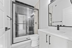 Why rent when you can own? Welcome to this stylish and thoughtfully designed half-duplex in the highly sought-after community of Deer Valley, Leduc. This spacious home offers 4 bedrooms and 3 full bathrooms, including a main-floor bedroom and bath perfect for guests, a home office, or aging-in-place convenience. The open-concept main level features a modern kitchen with stainless steel appliances, pantry storage, and a bright living area ideal for entertaining. Upstairs, you’ll find three generous bedrooms, including a private primary suite, a full main bath, and the convenience of upper-floor laundry. A separate side entrance provides excellent potential for a future legal suite—perfect for multi-generational living or rental income. Ideally located steps from schools, parks, playgrounds, and walking trails, with quick access to Leduc Common’s shopping and dining, the Leduc Recreation Centre, Hwy 2, and the Edmonton International Airport, this home perfectly blends comfort, style, and location.
