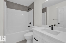 Welcome Home! Detached single-family home in Leduc featuring a legal secondary suite with 6 total bedrooms and 4 bathrooms. Spacious 1,755 sqft floor plan with open-concept living and modern finishes throughout. The main floor offers a large bedroom, full bathroom, bright kitchen overlooking the dining and living area with fireplace and feature wall. Upstairs includes a bonus room, upper laundry, 3 bedrooms, and a primary suite with walk-in closet and ensuite. The legal suite features a separate side entrance, 2 bedrooms, full kitchen, laundry, and open living area—ideal as a mortgage helper or investment opportunity. Located in a great area with easy access to amenities. Rear parking pad and optional appliance package available. Move-in ready and full of potential!