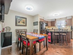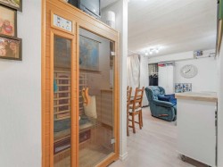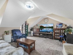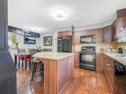 Built by Dolce Vita Homes, a three-time JD Power award-winning builder, and lovingly maintained by its original owner, this townhome delivers rare flexibility, personality, and comfort — all without condo fees.Located on a quiet, wide street across from a playground and scenic pond trails, ideal for young families, morning walkers, and anyone who values outdoor space without the upkeep, this property offers the perfect blend of privacy and accessibility. School bus pickup is right outside, and Christ the King School (Gr. 9–12) is just down the road. Beyond the neighborhood, you’re minutes from Edmonton International Airport, Costco, outlet shopping, and an easy commute to Edmonton.The tiled front entry welcomes you with a built-in bench and coat storage, opening into a light-filled living room with hardwood flooring. The kitchen features rich cabinetry, granite countertops, and a powered island, with ample dining space for family meals or entertaining. A powder room off the rear entry adds everyday convenience.Step outside to your 10x8 treated deck, leading to a fully enclosed solarium — a true lifestyle bonus. Used year-round for hosting or relaxing, this space expands your home in a way few townhomes can. The low-maintenance walkway, deckboard under the solarium and gazebo, and double detached garage show that every inch of this home has been planned for enjoyment without extra chores.Upstairs, the second level features two bedrooms, a full bath, and a laundry room with upper cabinetry. The front bedroom offers a walk-in closet and south-facing balcony overlooking the park a charming retreat for early risers or kids. The rear primary suite includes another walk-in, built-in reading lights with USB ports, and its own 4-piece ensuite.The third-floor bonus room is a highlight — the perfect family moving room, and/or flooded with natural light, with window nooks perfect that could be home to desks (dedicated work space) or creative corners, and a balcony offering serene pond views. Whether you're working from home, hosting movie nights, or just enjoying your own retreat, this level gives you the flexibility to live your way.Downstairs, the fully finished basement includes a third bedroom, 3-piece bath, sauna perfect for relaxing after a long day or offering a bit of luxury to visiting family, wet bar, and a rec room — all with low-maintenance vinyl plank flooring. The many closets, hidden storage space behind a painting on the stairway, large utility and laundry room, double garage, and covered gazebo off the solarium answer the most common concern in townhomes: “Where do we put everything?” and speak to the perfect use of space in this home.This home offers smart, stylish living that grows with you. Whether you're starting a family, managing a remote career, or investing in a flexible space for years to come, this property is ready to welcome you home.