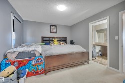 24' X 24' GARAGE W/8' DOOR! LARGE BEDROOMS! MASSIVE DECK! GREAT VALUE! This 1543 sq ft 3 bed, 2.5 bath 2 story provides room to build equity with a terrific open concept floor plan. Spacious front entryway w/ 2 pce bath leads to your lovely kitchen w/ massive island for meal prep! Large dining space for your 8 person table, living room w/ gas fireplace, & 9' ceiling for the grandiose feels. Classic carpet & lino for simple functional living. Upstairs leads to 3 bedrooms, including the primary bedroom w/ walk in closet & 4 pce bathroom. Additional 4 pce bath & closet. The basement is 90% finished, w/ laminate flooring, generous rec room for games or movie night (space for a 4th bedroom), laundry, and framed space for your future bathroom. Low maintenance yard w/ massive deck for entertaining, oversized double garage w/ added storage space in the attic. Blocks to playgrounds, trails, & quick access to Hwy 2. A great package; welcome to Southfork!