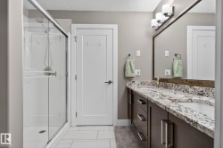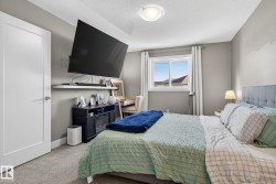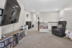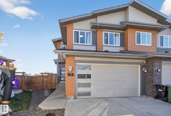 Welcome to this beautifully maintained half duplex in the family-friendly community of Blackstone! Offering a thoughtfully designed living space, this home truly shows pride of ownership. The bright and open main floor features a welcoming layout with a walkthrough pantry leading to a stunning kitchen with granite countertops and newer stainless steel appliances. The living room is highlighted by a shiplap feature wall with a ceramic tile fireplace and large windows that fill the space with natural light while overlooking the backyard. Step outside to enjoy a large pie-shaped, fully fenced, and beautifully landscaped yard—complete with a deck, fire pit, and charming wooden playhouse, perfect for summer entertaining. Upstairs, you’ll find a spacious primary suite with a luxurious 5-piece ensuite and walk-in closet. A cozy bonus room, convenient upstairs laundry, and two additional bedrooms with a 4-piece bathroom complete the upper level. Additional features include a double attached garage and A/C (2024)