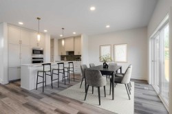 Welcome to the Westhill by Stranville Living Master Builder, an award-winning two-storey home model located in the dynamic west Lethbridge community of Copperwood. At just under 1,800 square feet of developed area, this 3 bedroom, 2.5 bath home is terrifically finished in selections made by the builder's skilled interior design team. The main floor includes a beautifully appointed kitchen in an upgraded MDF finish by Adora Cabinets, fully tiled backsplash, and quartz countertops for both the base cabinets and island with extended eating bar. Stranville Living's top tier appliance package includes a seamlessly integrated paneled Fisher & Paykel fridge, paneled dishwasher, induction cooktop, built-in hood fan, and a stainless steel wall oven and microwave combo unit. A sleek built-in electric fireplace with wood mantle accents the main floor living room. An 8' sliding glass door exits onto the future deck sitting adjacent to a massive rear window with views of the large rear yard. Upstairs, a large primary bedroom includes a tasteful double sink vanity and a sizeable tiled shower with glass door. Two more ample bedrooms, a 4-piece bathroom, and laundry closet also grace this upper level, but it is the 163 square foot media room that makes it complete. Don't forget about the high efficient mechanical equipment, Low E windows, and spray foam in the rim joists that help keep your heating and cooling costs in check. All the beautiful finishes of the home aside, it is the incredible size of the lot that sets this home apart from every other home on the street. Come by and see what I mean, you'll be happy you did. Pictures contain virtual staging. There's nothing like NEW!