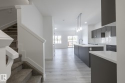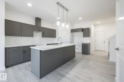 QUICK POSSESSION!! Juniper Heights is an expansive new community in Morinville. You'll enjoy a close proximity to schools, parks, pathways, new regional rec centre and more in this beautiful community! With over 1470 square feet of open concept living space, the Soho-D from Akash Homes is built with your growing family in mind. This duplex home features 3 bedrooms, 2.5 bathrooms and chrome faucets throughout. Enjoy extra living space on the main floor with the laundry room and full sink on the second floor. The 9-foot ceilings on main floor and quartz countertops throughout blends style and functionality for your family to build endless memories. PLUS a SEPARATE ENTRANCE AND single oversized attached garage! HOME IS NOW COMPLETE!