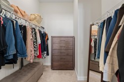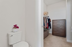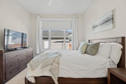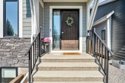 This upgraded END UNIT bungalow combines modern design, superior finishes, and a convenient location. Perfectly set in the middle of the street, away from the traffic circle and main road, you’ll enjoy a quieter setting with plenty of street parking and easy access to nearby walking paths. Inside, soaring VAULTED and cathedral ceilings paired with oversized windows create an incredible sense of light and space. The fabulous floor plan is open yet functional, featuring luxury vinyl plank flooring, a spacious living room, and a full sized dining area that’s bathed in natural light with the additional windows (end unit). The kitchen is a showpiece with a gas stove, upgraded hood fan, ceiling height soft close cabinetry, a PANTRY, quartz countertops, and an island. The primary suite is a true retreat with 13’ ceilings that add space for even the largest furniture pieces. A generous walk-in closet and ensuite with quartz counters & dual vanity complete the space. A main floor powder room and laundry add convenience, while the back entrance includes a built in bench with ample storage. Classic iron railings lead to the fully finished basement which is fabulous- featuring a huge family room, two oversized bedrooms, and a full bathroom. Large windows bring in plenty of sunshine, making the space feel bright and welcoming. You will notice all the extra features throughout, this home feels brand new and with a Built Green certification. Comfort features like a water softener and air conditioning are already in place, ensuring ease of living year round. The private backyard is maintenance free with low upkeep landscaping, perfect for people on the go, down sizers, or snowbirds. The detached DOUBLE garage is insulated and drywalled, providing excellent storage and functionality. And with absolutely NO CONDO FEES, you’ll love the freedom of ownership without extra costs. This stylish, move in ready home delivers modern upgrades, a fabulous floor plan, and a highly desirable location close to walking paths and amenities and quick access to Calgary. Check out the virtual tour!