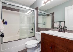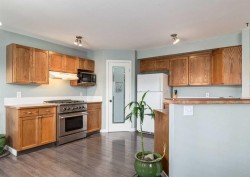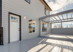 Welcome to this bright and welcoming 1,421 sq. ft. two-storey home in Cimarron Meadows, perfectly set on a quiet cul-de-sac with a large pie-shaped lot and a sun-soaked west-facing backyard. The main floor offers a spacious, open kitchen with classic oak cabinetry, an abundance of counter space, a generous walk-through pantry, and an upgraded stainless steel gas range—an ideal setup for busy families and enthusiastic cooks alike. The adjoining dining and living areas overlook the beautiful backyard, complete with a two-tiered wood deck and plenty of room for kids, pets, or future outdoor living ideas. A convenient 2-piece powder room and a combined laundry/mud room with access to the double attached garage complete the main level. Upstairs, the huge primary bedroom impresses with its natural light and walk-in closet, joined by two additional bedrooms and a well-appointed 4-piece bathroom. The partially finished basement, with two windows and a rough-in for a future bathroom, offers a great opportunity to expand your living space to suit your needs. Ideally located close to schools, parks, playgrounds, shopping, and restaurants, this is a fantastic opportunity to settle into one of Okotoks’ most family-friendly communities.