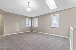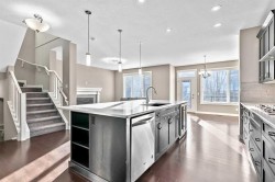Welcome to 90 Mount Rae Heights in Mountain View! This beautiful 2429.5 sq. ft. (living space above grade), two-story home offers 4 bedrooms, a bonus room with skylights, plus an oversized double garage and is ready for you to move in. Showcasing a well-thought-out floor plan with no wasted space, the bright, open-concept layout, enhanced by NATURAL light flows seamlessly into each space through all the oversized, south-facing windows. Enjoy style and perfection throughout each floor: beautiful hardwood flooring an inspired family kitchen with an oversized, family-size island featuring a sink, wine fridge, built-in dishwasher & storage, premium stainless-steel appliances, 5 burner gas top, built in oven and microwave, sleek dark cabinetry, quartz countertops, a walkthrough pantry to the mudroom with a doggy shower, and access to the oversized double garage. The main floor also offers, a den at the front entrance, a living room with a stunning ceiling-mount light and a gas fireplace to cozy up to through the winter months. The dining room provides ample space to comfortably accommodate large family gatherings and access to the deck. The upper level features a spacious bonus room with skylights and a semi-vaulted ceiling. The primary bedroom includes a 5-piece bath and a walk-in closet—a perfect place to start or end your day. 3 more nicely sized bedrooms, a 5-piece bath, and a laundry room complete this level. The unfinished basement awaits your future development. All of this is located in a great location and a family neighborhood. This is a home to fall in love with and make it your New Year's wish!