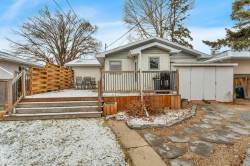 CLASSIC CHARACTER + MODERN UPDATED BUNGALOW IN GRANDVEIW! This four bedroom, two bathroom home is move-in ready and sure to impress. Step inside and be welcomed by the bright living room with a large west exposed window for lots of natural light along with new hardwood floors that run throughout the main living spaces. The kitchen is an entertainers delight offering white cabinets, lots of counter space, eat-in dining area, coffee bar and two nice sized windows which over look the yard. You'll love the convenience of three bedrooms as well as a four piece bathroom all on the main level. The basement is fully finished with a large family/rec space, fourth bedroom (no closet), three piece bathroom, storage and laundry space. Outside, the property boasts a large deck with a privacy wall which over looks the mature fenced yard with a firepit area and garden. The double garage completes this wonderful package, providing one half with parking and the other side for additional storage. At the front of the home you'll also find a nice wood deck which looks onto the mature tree lined street. Other extras include new pex piping (November 2025), vinyl windows and convenient central vac. Come see for yourself and get ready to fall in love with this special home!