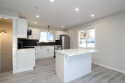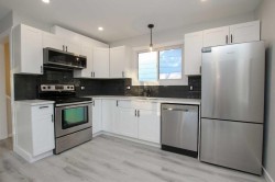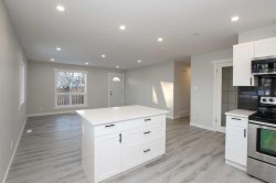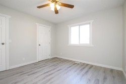 IMMEDIATE POSSESSION AVAILABLE ~ RENOVATED & FULLY DEVELOPED 4 BED + DEN, 2 BATH BUNGALOW ~ DOUBLE DETACHED GARAGE & RV PARKING ~ This stylishly renovated home is move in ready and features new windows, flooring, paint, hot water tank (2024), furnace (2024), kitchen and bathrooms, garage shingles (2025), house shingles (2019) ~ The open concept main floor layout features vinyl plank flooring and an abundance of south and west facing windows that fill the space with natural light ~ The kitchen offers plenty of white cabinets, tons of stone counter space including an island with an eating bar, full tile backsplash, window above the sink and a wall pantry ~ The primary bedroom can easily accommodate a king size bed and has ample closet space ~ Two additional main floor bedrooms are both a generous size ~ Updated 4 piece bathroom has built in shelving and a convenient laundry chute ~ Mud room with separate entry and access to the backyard and the fully developed basement ~ Spacious family room has recessed LED lighting ~ 3 piece bathroom with a walk in shower and linen closet ~ 4th bedroom, den with a closet, laundry and ample storage complete the basement ~ The backyard is landscaped with mature trees, shrubs and perennials and is fully fenced with back alley access ~ 24' x 24' detached garage with two overhead doors has a large gravel parking pad with space for an RV ~ Front drive offers additional off street parking ~ Located close to multiple schools, parks, playgrounds, GH Daw Centre with public swimming, skating and more ~ Walking distance to all other amenities including shopping, dining, medical ~ Easy access to downtown and Highway 2.