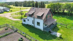 Bring the horses!! Located just 6 minutes to Alix on pavement! This Character home was brought in and placed on a newer poured concrete foundation in 1977. The plumbing and electrical has been updated over the years. This 5.45 Acre FENCED property features a detached 30'x60' shop, PLUS a 40'x90' HEATED BARN / (currently used as a RIDING ARENA) with storage, and an auto waterer in the North large pasture. The barn/arena previously had water to it, so may still have the ability to have that now. Just inside the door of the home is the mudroom and a heated tack room to store saddles etc. Inside you'll notice the character and charm of this beautiful two story with tons of space and windows throughout. A bedroom/office is located right off of the kitchen which would work nicely as a walk in pantry! There is a full bathroom on this level, functional kitchen with large dining space and living room. Upstairs has 4 bedrooms including the large primary that provides its own ensuite. Downstairs has been partially developed, currently 2 rooms, 1 bedroom and the other considered a den as the deck covers the window (no egress). Other updates to note is the NEW SIDING July 2025, new outdoor riding pen, some new windows, newer roof, & new Culligan water UV filtration system. This land is FULLY FENCED so the livestock can roam safely. There is also a heated shed with outdoor space attached for chickens, bunnies etc. Acreages this close to town haven't come up much in the last several years, your right in between Alix, Mirror and Tees! A perfect spot for some country living!