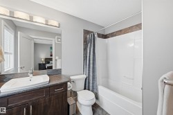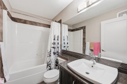 Well-maintained duplex boasting 1,500sf above grade PLUS a fully finished basement in a desirable Sherwood Park community! Nicely situated across from green space w/ a walking trail leading to park/pond. Upon entry find a cozy entrance w/ access to garage & 2pc bathroom. Open-concept main floor is the perfect family space w/ a sizeable kitchen (including granite counters, extended pantry, stainless steel appliances), dining nook & living room w/ gas fireplace. Upstairs find bonus/flex space, large primary bedroom w/ ensuite, 2 spare bedrooms, shared 4pc bathroom & laundry. Basement finished w/ recreation space, bedroom & 3pc bathroom. Double attached garage. Large west back yard (no neighbours directly facing behind either). Features include AC, 9' ceilings, Hunter Douglas blinds, extended driveway & more. Perfect starter home, or "move-up" single family home! Close proximity to Leisure Centre/Sports Pavillion, restaurants, shopping/retail, schools. Easy access to major arteries. A must see!