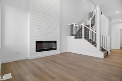 Welcome to this stunning half duplex in the sought-after community of Fenwyck, Spruce Grove – masterfully crafted by Victory Homes. Double attached garage with oversized driveway. Main floor den with full bathroom. The open-concept layout is highlighted by the open-to-above living room, complete with an electric fireplace with feature wall and large windows that flood the space with natural light. Kitchen with central island, ceiling-height cabinets and quartz countertops. Upstairs, enjoy the added comfort of a bonus room, ideal for family lounging or a media area. The spacious primary suite includes a 5-piece ensuite with a double vanity, tiled shower, bathtub, and complete with a walk-in closet. Additional 2 well-sized bedrooms, a 3-piece bathroom, and laundry complete this floor. Separate side entrance to the basement. Backing onto green space. Close to amenities.
